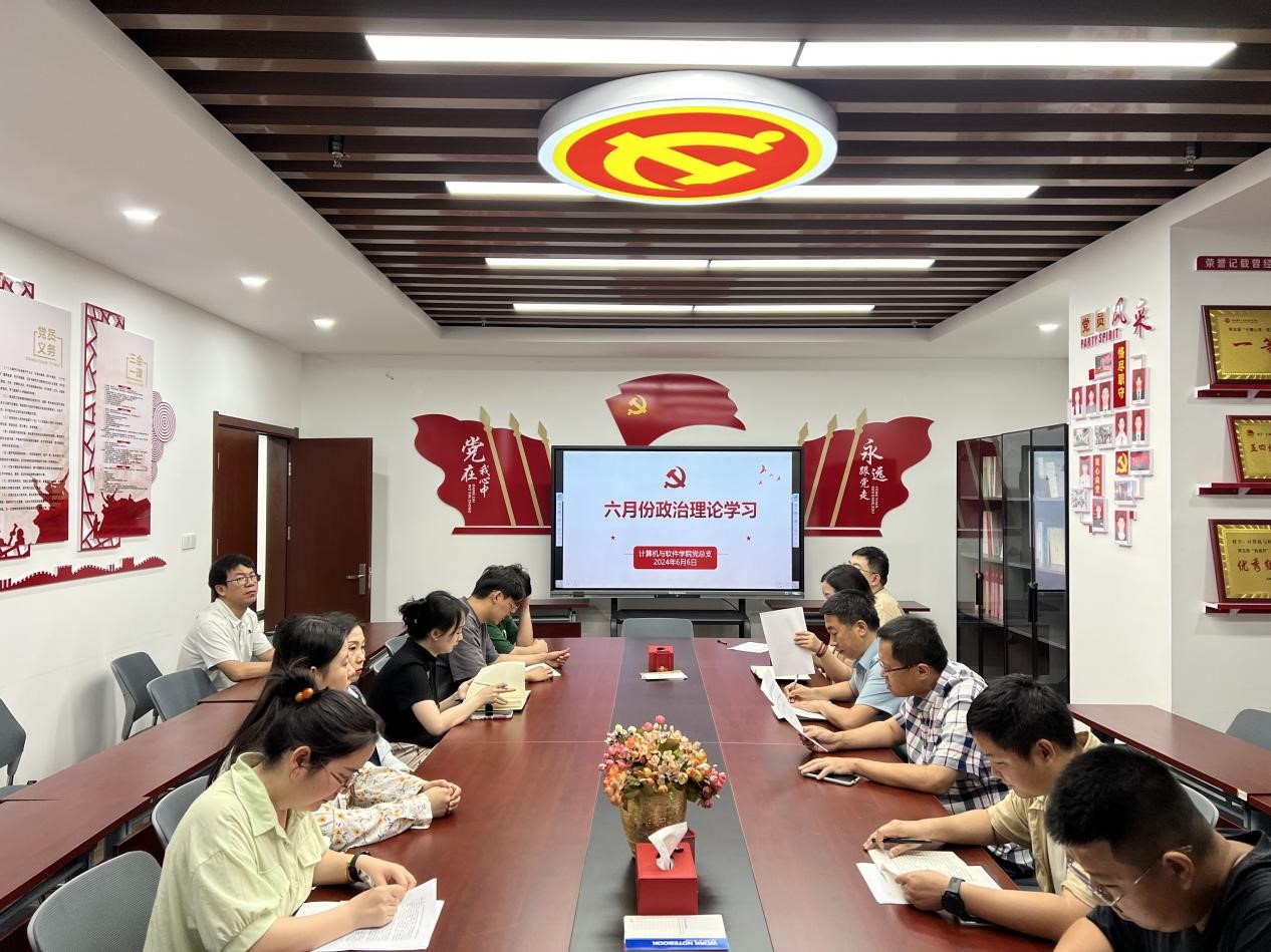【计算机与软件学院】6月6日下午,计算机与软件学院组织全体教职工在博远楼东702开展六月份政治理论学习,学习由党总支书记王勃主持。