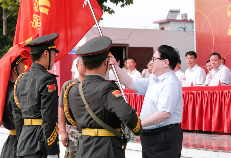 校党委书记全卫强给军训团授旗