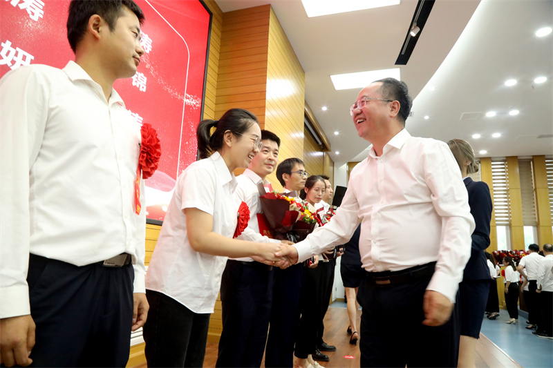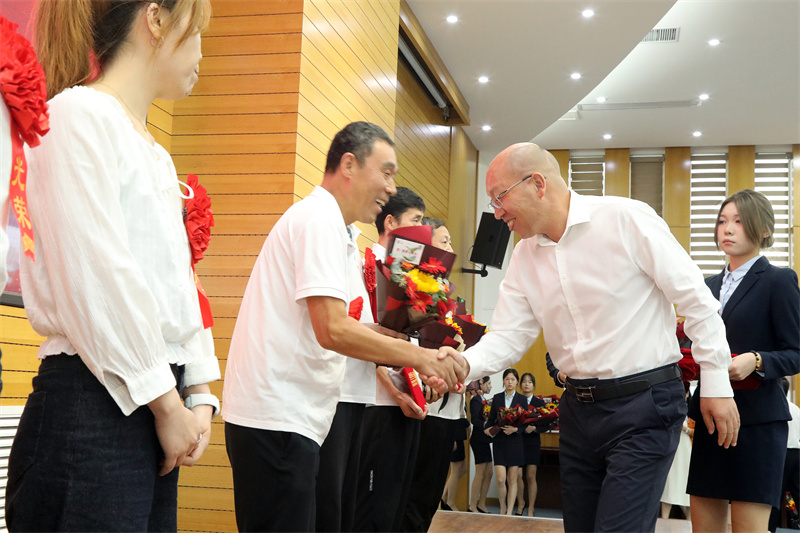 校党委书记全卫强讲话。他表示,在过去的一年里,广大教师始终以学校为家,团结合作、奋力拼搏,在自己的岗位上尽心尽力,将能力发挥到了极致,将心血全用在了促进学校发展上,各项工作取得了优异的成绩。同时,他对全校教师提出四点希望:一是坚守育人初心,成为政治过硬,信仰坚定的理想之师;二是以德立身立学,成为师德高尚、行为世范的品行之师;三是锤炼学识修养,成为业务精湛、学识渊博的学问之师;四是勇于担当作为,成为潜心育人、乐于奉献的敬业之师。希望全体教师以先进为榜样,学习甘为人梯的奉献精神、认真执教的敬业精神、爱生如子的园丁精神,努力争当先进、赶超先进,在工作中做出更大成绩、为学校争得更多荣誉。