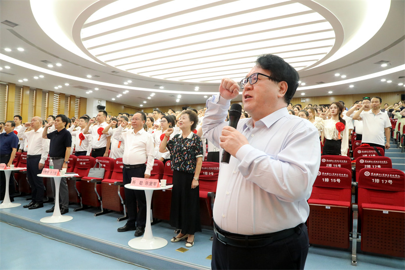 大会在庄严的国歌声中拉开了帷幕。全体教师向国旗庄严宣誓,校党委书记全卫强领誓。