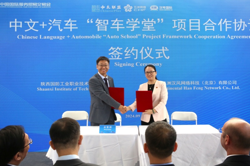 签约会上,孟繁增代表学校与五洲汉风网络科技(北京)有限公司签署“中文+汽车‘智车学堂’”项目合作协议,合作双方将通过开展汽车领域“中文+职业技能”合作,为中国汽车行业“走出去”培养具备全球视野和竞争力的本土技术技能的人才,打造汽车领域“中文+职业教育”国际化品牌。
