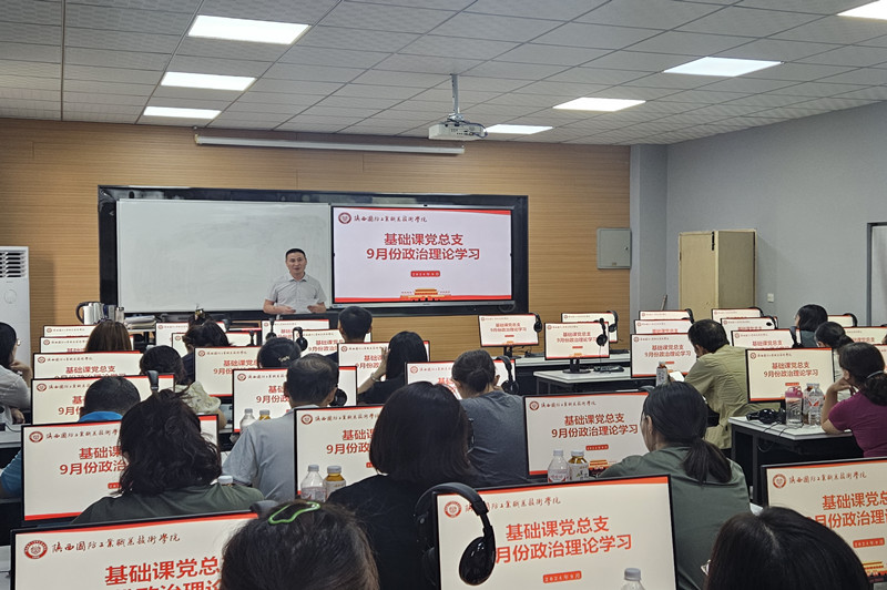 【基础课党总支】根据陕国职党宣〔2024〕15号文件《关于2024年9月教职工政治理论学习暨组织活动安排的通知》相关要求,为进一步加强基础教职工的政治理论学习,切实提高教职工政治素质和理论水平,基础课党总支于2024年9月5日在北区5-604语音室开展9月教职工政治理论学习,会议由党总支书记权华主持。