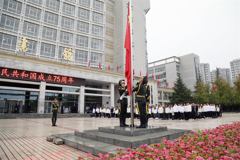 9月30日清晨,为庆祝中华人民共和国成立75周年,我校在北校区举行了庄严的升国旗仪式,学校领导,师生代表参加了升旗仪式。副校长刘少阳讲话,计算机与软件学院副院长王勃主持仪式。