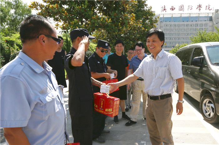连日来,西安地区持续高温、酷暑难耐,为确保劳动者安全、健康和暑假期间学校工作的正常进行,在陕西省教科文卫体工会委员会的大力支持下,8月2日,校工会开展了“送清凉送关爱”活动。党委书记张卫平,院长、党委副书记刘敏涵,副院长杨聪,副院长全卫强等校领导带领校工会一行人,为奋战在高温酷暑下的一线工作者送去了夏日的清凉。