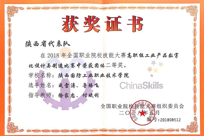 6月4日至6日,全国职业院校技能大赛高职组制造大类“工业产品数字化设计与制造”赛项比赛在苏州举行,由数控工程学院院长修学强带队,数控工程学院成雷涛,鲁腾飞两位学生组成的陕西二队荣获团体二等奖。