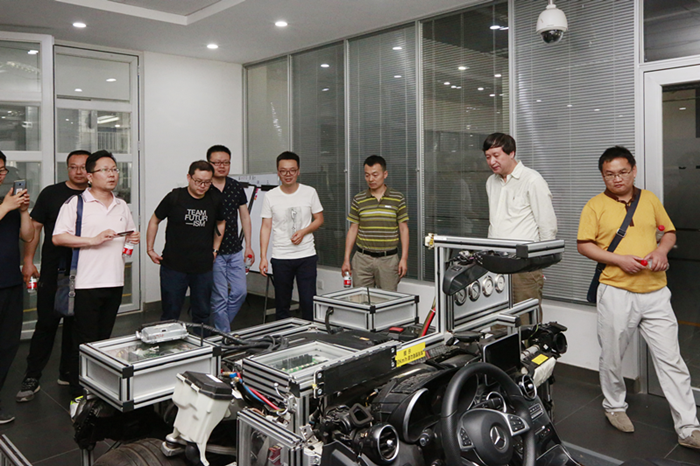 在党委宣传部部长杨建伟的陪同下,西安工业大学教师一行参观了我校的国防科技展览馆和戴姆勒铸星项目教育基地。路金龙一行对我校近年来取得的成绩表示赞扬和肯定,并希望双方今后能加强学习交流,在传承军工文化、弘扬军工精神、专业建设、技能竞赛、科学研究等领域建立更加紧密的联系,促进两校之间的合作共赢发展。