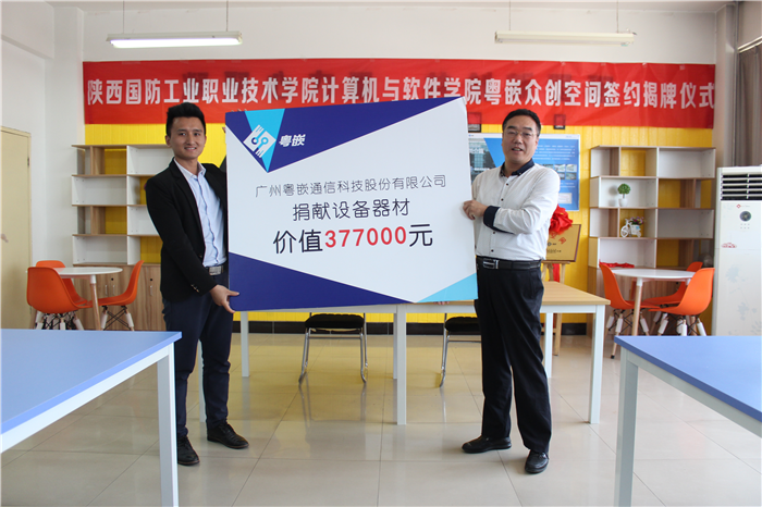 5月22日下午,我校与广州粤嵌通信科技股份有限公司举行了“计算机与软件学院---粤嵌国家级众创空间”签约暨揭牌仪式。副院长刘敏涵、广州粤嵌科技西安中心总经理王乐忠出席了签约仪式,计算机与软件学院、校企合作处相关负责同志参会,签约仪式由计算机与软件学院院长郭立文主持。