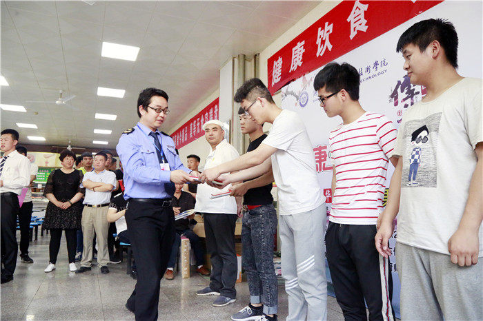 为弘扬中华民族饮食文化,丰富同学们的校园生活,推动校园和谐文化建设,从“服务同学,锻炼自我”出发,按照陕教【2018】42号文件精神,全面贯彻落实《食品安全法》,在建校六十周年之际,后勤处餐饮中心、机电工程学院于2018年5月3日下午16:20分,在北校区餐饮中心举办了饮食文化节系列活动,活动的主题是“健康饮食,文明就餐”。副院长全卫强、鄠邑区食品药品监督管理局稽查科科长王廷利、鄠邑区食品药品监督管理局食品安全检查科燕晨征、宣传部、团委、机电工程学院、艺术学院、后勤处相关人员及部分学生应邀参加了本次活动。