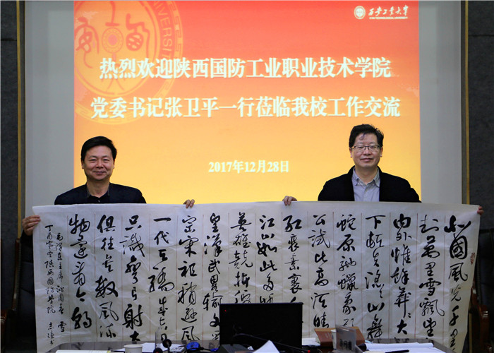 张卫平书记代表我校学习调研团,对西安工大的热情接待表示衷心的感谢,他介绍了我校近年来的发展成绩,回顾了和西安工大同根同源的历史友谊,张卫平书记希望能够通过此次“走亲之旅”调研活动,学习西安工大先进的办学经验,为我校在办学思路、师资培养、制度建设等方面提供借鉴。