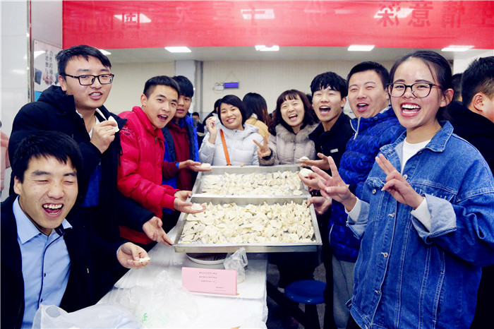 活动中老师同学们一起包饺子话家常,其乐融融,餐厅里洋溢着温暖欢快的气氛。一阵忙碌过后,大家都吃上了热腾腾的饺子,欢声笑语弥漫在活动现场,让师生感觉到节日的温暖,同时也丰富大学生生活。并借此机会弘扬我国传统饮食文化——包饺子。
