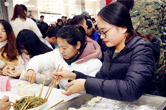 冬至,是中国农历中一个重要的节气,也是中华民族的一个传统节日,中国北方多数地方有冬至吃饺子的习俗,经过数千年发展,已经形成了独特的节令食文化。12月22日,值此冬至来临之际,后勤处餐饮中心联合分院在北校区餐厅一楼东区举办“关爱心连心,师生情意深,一份饺子宴,浓浓国防情” 为主题的冬至包饺子活动。学院部分教职工、部分分院建档立卡学生100余人参加了此次活动。