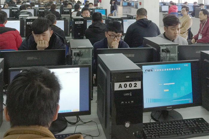 本次考试首次采用电脑在线答题的方式,较以往传统纸质答卷更为科学、公平。考生仔细作答,工作人员认真负责,考场秩序井然有序。陕西省国防科工办鉴定站主任孙敏莉携陕西省职业鉴定指导中心巡考组成员巡视本次考试,并对我院考试组织,考风考纪给予高度评价。理论鉴定完成后,在之后的20天内,会相继完成各职业工种的实操环节考核,成绩合格者,将颁发由人力资源和社会保障部签发的《中华人民共和国职业资格证书》。