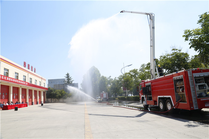全体参训学员在教官的统一指挥下,不畏酷暑、精神抖擞、口号嘹亮、气势如虹……此次汇报表演共分四个科目,包括:军训成果汇报、两盘水带连接、奔驰车载炮与双干线水幕水枪操、16米臂架炮与单干线自摆炮操。