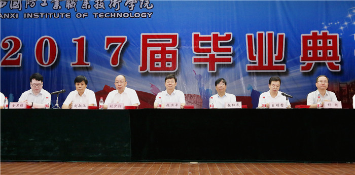张权民院长代表学校向2017届全体毕业生致辞。他表示,在这庄严时刻,代表全校师生员工,向圆满完成学业的毕业生,致以最真诚、最热烈的祝贺!向优秀毕业生获得者表示深深的敬意!对毕业生提出几点希望:一是把人做好,诚信友善,勇于担当。常言道:“人无信不立”。以诚待人,以信取人,这是一个人的立身之本和基本道德品格。要学会宽容与谅解,与人为善,处理好日常生活中各样人际关系;要勇于担当,尽快适应新环境、新生活。希望大家能用诚信与勤奋赢得信任,用勇于担当赢得尊重。二是把事干好,大处着眼,小处入手,锲而不舍。天下难事,必做于易;天下大事,必做于细。确定目标、成就事业必须从简单事情做起,从细微之处入手,生活的一切都由细节构成,细节决定成败,把每一件平凡的小事做好做细做实,才有可能成功;最后要锲而不舍,人与人之间最小的差别是智商,最大的差别是坚持,一切成功都源于坚持。三是把梦圆好,大胆有梦、努力追梦。拿破仑说过,“不想当将军的士兵,不是好士兵”。你们很幸运,遇上了一个飞速发展的时代,互联网+”、“大众创业、万众创新”、“中国制造2025”、“一带一路”等重大战略的相继实施,为大家带来了更多机遇。希望大家大胆有梦,并不懈追梦。青春只有一次,此时不搏何时搏?