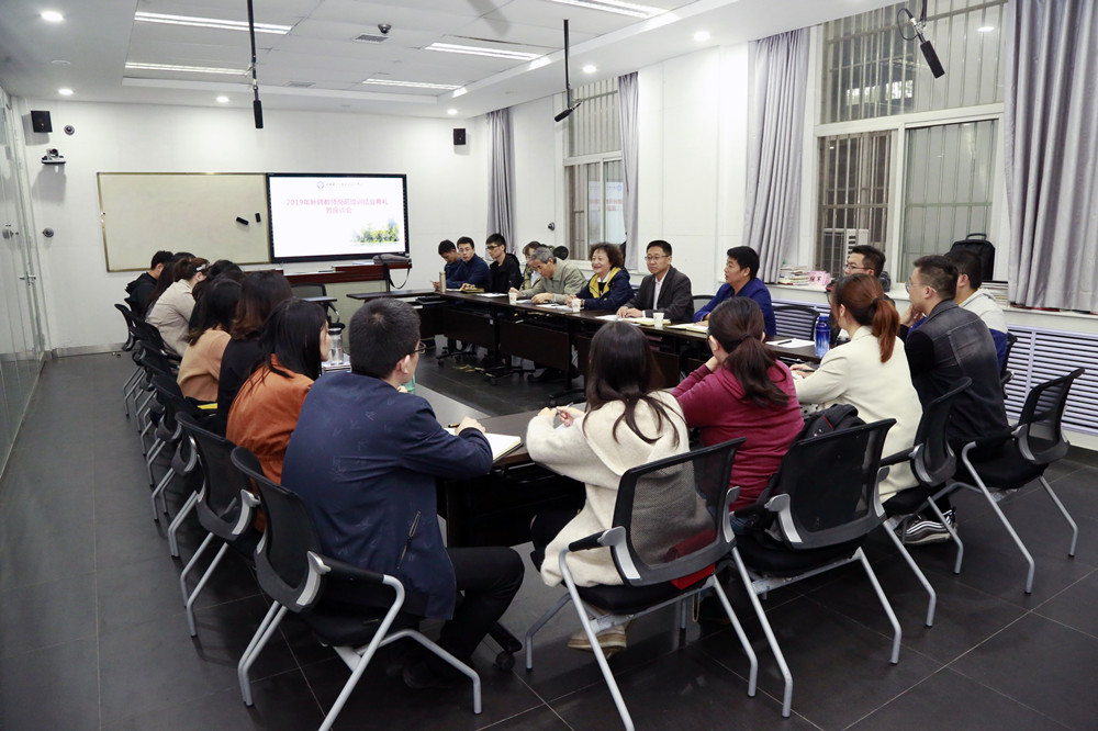 10月10日下午,我校在戴姆勒实训中心举行2019年新聘教师岗前培训结业典礼暨座谈会,副院长孟繁增、退休教师代表、教师发展中心相关人员及全体新聘教师参加了会议,会议由教师发展中心主任胥航军主持。