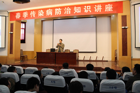 王医生首先从春季气候变化、昼夜温差等因素导致呼吸道传染病高发的原因讲起,以肺结核、流行性感冒、水痘、流行性腮腺炎等春季高发传染病为例,从传播途径、主要症状、易感人群、预防措施等方面向同学们作了详细介绍。他告诫同学们一定要注意个人卫生,养成良好的卫生习惯,勤洗手、常开窗、多喝水,加强体育锻炼,增强个人体质,才能远离疾病。同时,他希望同学们通过本次讲座,明确各类传染病的发病症状,便于疾病的及时发现,争取最佳的治疗时间。
