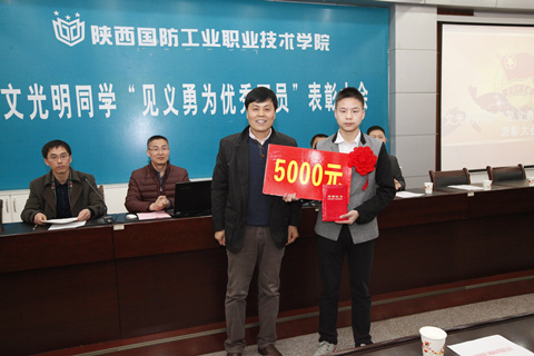 为弘扬正气,表彰先进,进一步倡导见义勇为的精神,校团委决定授予文光明“见义勇为优秀团员”荣誉称号,颁发证书并给予奖励。希望全校团员青年以文光明为榜样,继承和发扬中华民族的传统美德,努力践行社会主义核心价值观,团结奋进,为实现我校高层次国防职教梦做出新贡献。