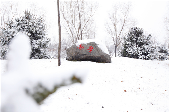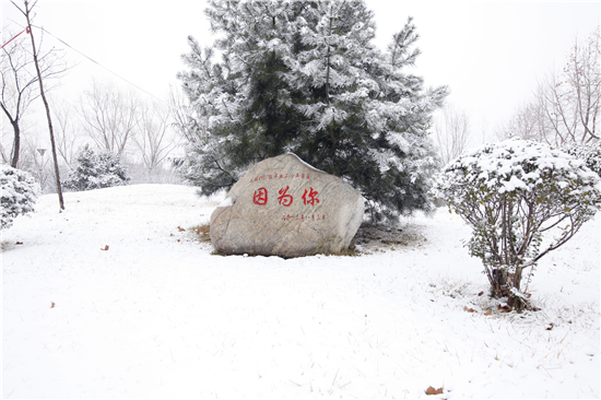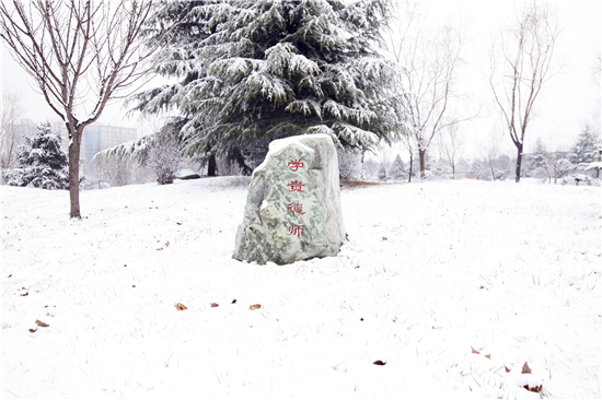 “智者乐水,仁者乐山”,大学校园文化也是如此。2月21日(正月十四),在2016年春节即将结束的时候,天空中飘起了雪花,让国防学院校园里银装素裹。校园(北区)里的景观石在皑皑白雪的衬托下,尤其引人注目。