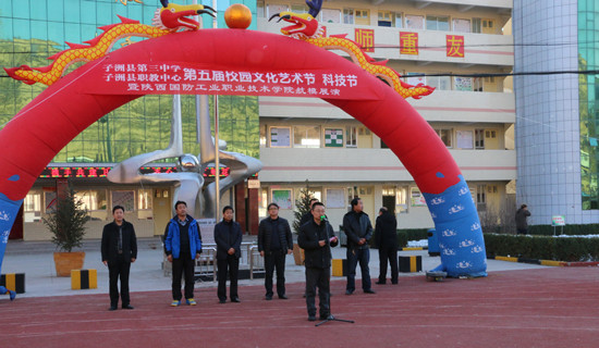 根据中宣部、教育部等九部门联合印发《关于广泛开展文明共建、文化共享“结对子、种文化”活动的通知》的精神。11月26日,我校赴榆林市子洲县第三中学和子洲县职教中心参加两个学校共同举办的第五届校园文化艺术节、科技节,开展文明共建、文化共享“结对子、种文化”活动。当日凌晨五点,我校由50多名师生组成的代表团不畏严寒从户县出发,经过600多公里的车程于下午四点左右到达榆林市子洲县第三中学与我校先期到达的航模队汇合。