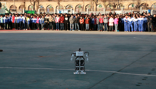 在开幕式上,我校电子教研室主任屈宝鹏老师代表学校领导对本届文化艺术节、科技节的举办致以热烈祝贺。随后,我校航模队进行了精彩的飞行表演,也为在场的中学生进行了相关科技知识的讲解和无人机的介绍。