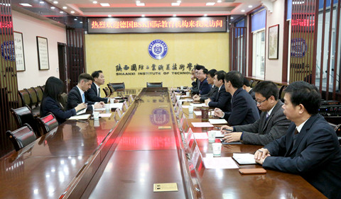 11月11日,德国BSK国际教育机构亚洲事务执行总裁凯尔·费德勒博士、驻华代表中国事务专员陈钢、驻华代表助理范飞一行3人访问我校。学校党委副书记王明哲、副院长贾宝勤、刘敏涵、杨聪,党政办、人事处、教务处、实践教学管理处、机电工程学院负责人和赴德培训教师代表热情接待了来宾。