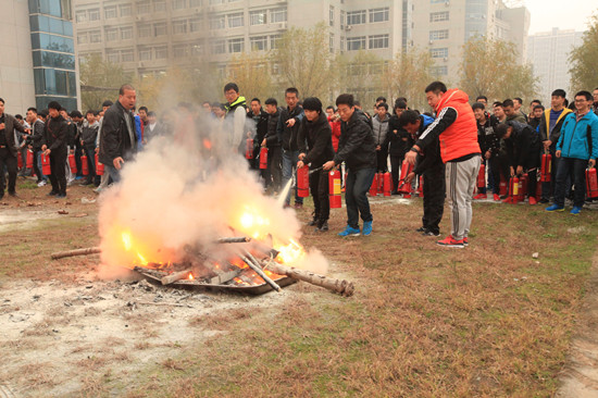 学生现场进行灭火演习