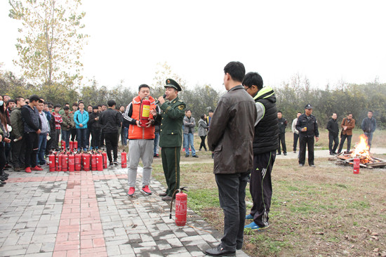 任警官讲解灭火器使用方法