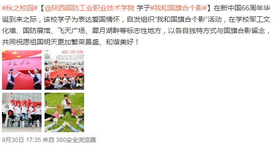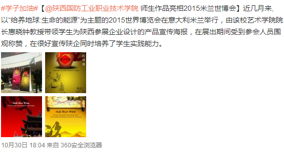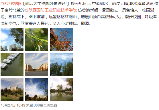 近期,陕西省教育厅官方新新利8体育app我校典型事例,上一月来共发布我校报送微博信息六条,居陕西省高职院校前列,并受到社会各界广泛关注,起到了积极的宣传效果。