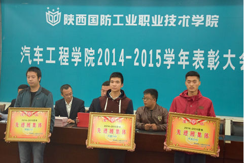 会上,张帆宣读了学院2014-2015学年新利体育官方网站表彰决定,表彰了优秀班集体3个、优秀学习标兵1人、优秀学生干部标兵1人、三好学生104人以及优秀班干部30人。张国政老师宣读了汽车学院2014-2015学年技能节表彰决定,对参加汽车自动变速器拆装与检修、汽车发动机拆装与检修、汽车营销和焊接技术赛项获奖的团体和个人进行了表彰。