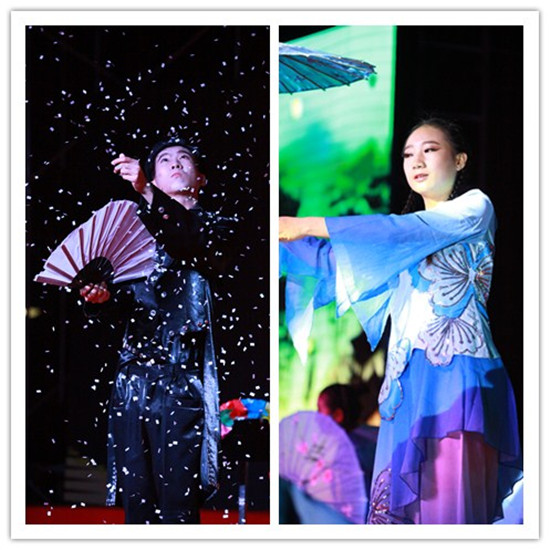 晚会在管弦乐团欢快的《青春飞扬向太阳》演奏中拉开了帷幕。舞蹈、情景剧、朗诵、魔术、武术表演、歌曲联唱等节目轮番上阵。歌舞《黄河船夫曲》中陕北汉子的粗犷豪放;朗诵《永生的和平鸽》中浓浓的爱国情怀;街舞《GET OUT》的炫酷洒脱、拉丁舞《第一声喝彩》的热情奔放、古典舞蹈《碧雨幽兰》的温婉柔情、爵士舞《宝贝》的热辣欢快,引得大家阵阵喝彩。97届校友的方言版《我的家乡在陕西》、武术《忠博武毅》、魔术《剑穿美女》、舞蹈《七月火把节》更是将晚会推上了高潮。晚会现场同学们欢呼与呐喊声此起彼伏,微信互动墙更是热评不断。