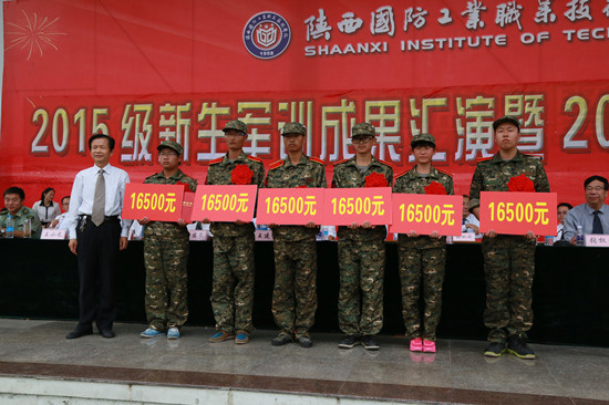汇演结束后,刘敏涵副院长宣读了2015级军训优秀连队、优秀教官、优秀学员名单,学校领导为军训先进集体和个人颁奖。