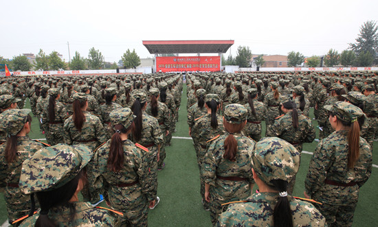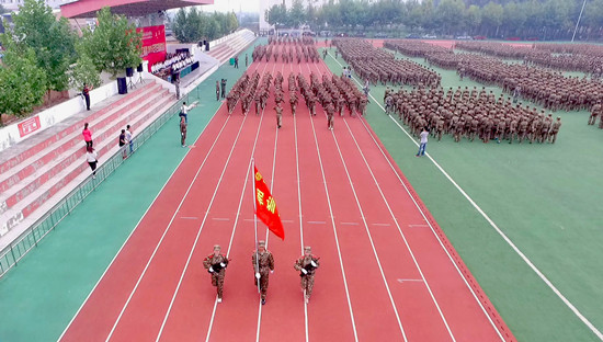军训学员们英姿飒爽地走过主席台