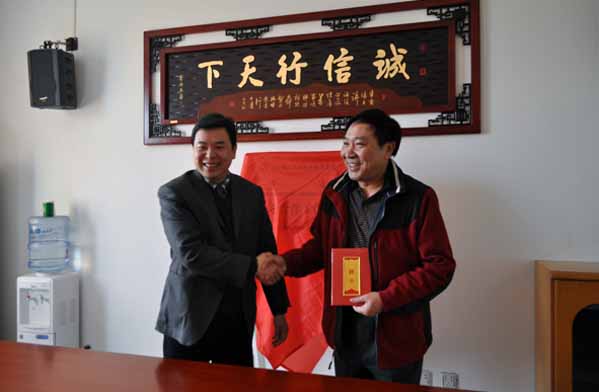 挂牌仪式上,学院诚聘陕西宝塔山油漆股份有限公司董事长李松财为化工学院精细化工专业首席顾问、副总经理任崇理为化工学院兼职教师,王明哲书记代表学院向他们颁发了聘书。王明哲书记、李松财董事长为校企合作工作站揭牌。