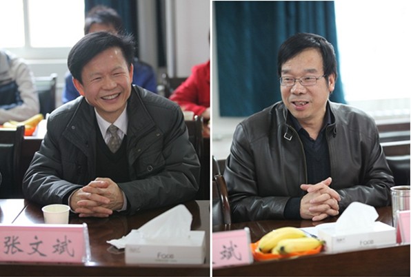学院党委书记张文斌(左)、院长张权民出席座谈会并讲话