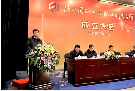 2011年12月16日上午,陕西国防工业职业教育集团成立大会在陕西宾馆北大礼堂隆重举行。省委副书记、省委教育工委书记王侠和国家国防科技工业局分别向集团成立大会发来贺信。陕西省政协原副主席刘石民、中国工程院院士、中国兵器工业第二零三研究所原所长王兴智和省国防科技和航空工业办公室、省教育厅、省人力资源和社会保障厅、省发展和改革委员会等单位的相关部门负责人出席大会,省教育厅副厅长郭立宏出席大会并讲话。大会由省国防科技和航空工业办公室党委书记、主任赵西民主持。