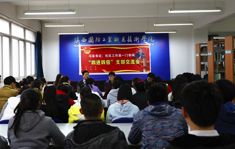 3月24日,学院团委在图书馆三楼举行“四进四信”主题团日活动,本次活动以如何做好社区管理工作为切入点,邀请了户县县城丰京社区党总支副书记李永宁与师生紧紧围绕习近平总书记春节前来陕重要讲话“社区工作是一门学问”,探讨社区管理工作的具体内容。经管学院党总支书记严长远、院团委书记李俊涛以及经管学院社区管理专业与老年服务专业学生等四十人参加活动。
