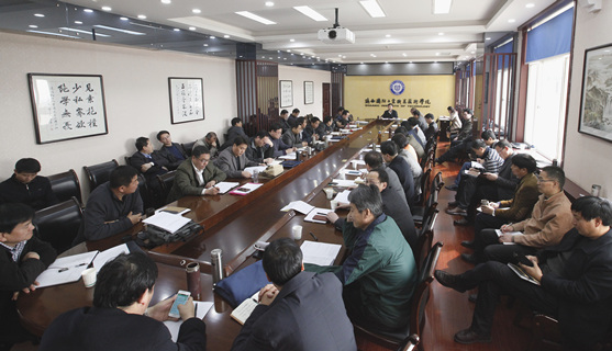 3月16日,学院召开中层以上干部会议,集体学习习近平总书记春节前来陕视察重要讲话精神,传达学习了陕西省委书记赵正永在学习贯彻习近平总书记来陕视察重要讲话全面推进法治陕西建设第一期研讨班上的讲话精神。学院中层以上干部参加了学习。党委书记张文斌主持会议。