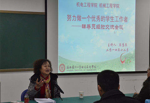 为推动辅导员有效开展学生日常教育管理工作,加强辅导员间的工作交流。12月16日,机电工程学院与机械工程学院辅导员工作经验交流会在北校区10-308室举行,邀请学院原党委副书记陈黛琴老师做题为“努力做一个优秀的新利体育官方网站者”的报告。
