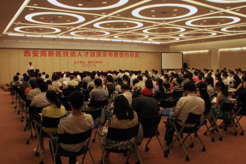6月28日上午,西安高新区在高新区管委会召开西安高新区技能人才政策发布暨签约仪式。我院被高新区认定为高新区首批高素质技术技能人才培养基地。省教育厅副厅长蔡钊利、西安高新区党工委副书记、管委会副主任杨明瑞、管委会副主任陈辉与省、市、区相关部门负责人到会,学院党委副书记刘少阳带领招就处等职能部门参加会议。