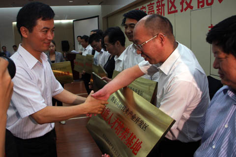 图3 西安高新区管委会授予我院“技能人才培养基地”铭牌