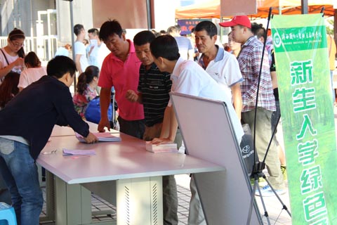 在报到现场,新生登记、物品发放等环节有条不紊地进行着。工作人员熟练地为新生办理着入校手续,咨询处有关人员耐心解答着新生和家长们的问题。大学生志愿者们为初进学院的学弟学妹们解答疑问、引路、提行李,办理入学登记,热情周到地提供服务。学院党政领导来到迎新工作现场,了解各单位迎新工作情况,并与新生和家长亲切交谈。有关处室及各分院的负责人对迎新工作高度重视,周密部署,热情服务,确保学院迎新工作圆满完成。