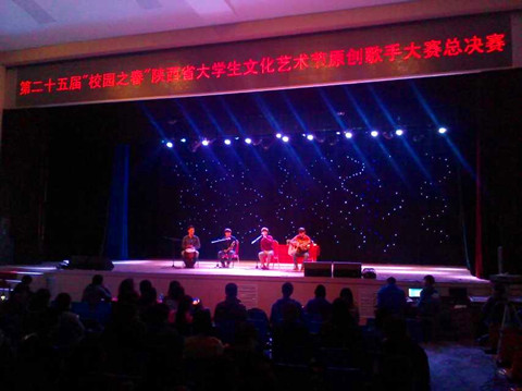由中共陕西省委高教工委、共青团陕西省委员会和陕西省学生联合会主办的第二十五届“校园之春”陕西省大学生文化艺术节大学生校园原创歌曲大赛总决赛于2014年10月31日在西安交通大学宪梓堂隆重举行。我院由大学生艺术指导中心主任常继红老师指导,由院团委书记李俊涛老师、团委常继红老师和王文雅老师带队的四名同学参加了总决赛,并获得了大学生原创歌曲大赛总决赛三等奖(第四名)的好成绩。