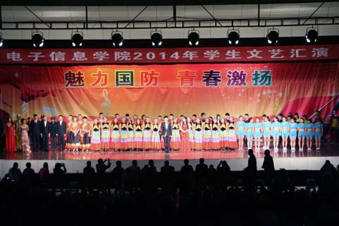 11月2日晚,学院北区大学生活动中心座无虚席,人声鼎沸,电子信息学院“魅力国防 青春激扬”2014年学生文艺汇演隆重上演。学院学保处、电子信息学院、机械工程学院、机电工程学院、数控工程学院、艺术学院、基础课部负责人与一千余名师生共同观看了精彩的文艺表演。