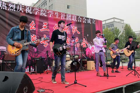 为活跃校园文化氛围,展示学生社团风采,传递正能量,10月16日下午4:30,院团委在北校区砺剑广场举办“幺三幺乐队摇滚专场演唱会”,庆祝学院大学生社团联合会成立。
