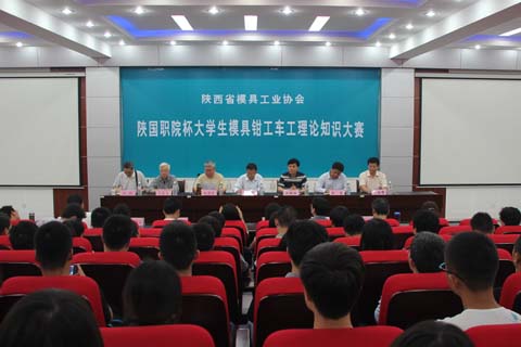 5月24日下午,陕西省模具工业协会2014年“陕国职院”杯大学生模具钳车工工理论知识大赛在我院开幕。陕西省工业经济联合会副会长庄永杰,陕西省模具工业协会秘书长陈博源、副秘书长赵兴、专家组组长王鼎泉,我院副院长刘敏涵、实践教学管理处处长张鑫、汽车学院院长史朝辉出席了开幕式。来自陕西工业职业技术学院、西安航空职业技术学院、西安理工大学高等技术学院、宝鸡职业技术学院、西安职业技术学院及我院的60名参赛选手将参加本次比赛。