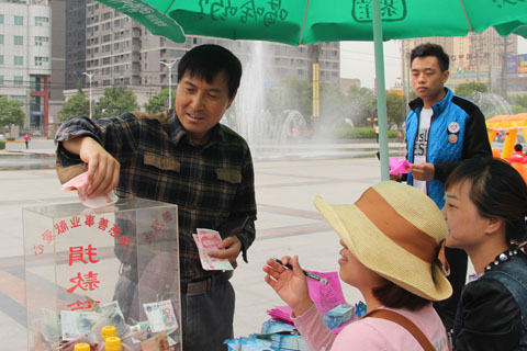 当许多人以多样的方式去度过五一假期时,我院思政部教师和学生志愿者走向街头,在户县人民路广场参加“为仝家锐小朋友爱心募捐”活动,为身患重病的仝家锐小朋友募捐。此次活动由共青团户县委员会发起,户县志愿者联合会、我院思政部等单位组织实施。