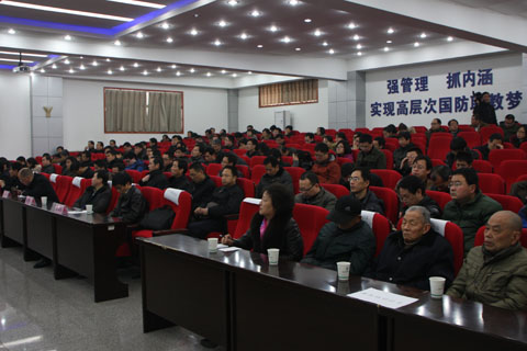 学院党委书记张文斌同志做了《深刻领会三中全会精神 强化管理抓内涵 为实现高层次国防职教梦而团结奋斗》的专题辅导报告;张文斌书记结合职业教育发展形势和学院实际,解读了全会报告的亮点和学院贯彻全会精神的具体举措,阐述了后示范建设的主要内涵,指明了学院改革发展的方向。他指出实现高层次国防职教梦,关键在于全院上下的团结奋斗,这就要求全院党员干部一要深化学习意识,不断坚定理想信念;二要增强担当意识,大胆做好履职工作,三要强化为民意识,全心全意服务师生;强化带头意识,自觉接受师生监督。