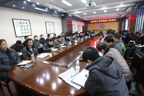 党委书记张文斌部署了2014年党委工作。党委的工作要点(另行发文)主要是:一、深入学习贯彻十八届三中全会和习近平总书记系列重要讲话精神;二、巩固党的群众路线教育实践活动成果,形成作风建设长效机制;三、启动后示范建设,加强内涵建设力度,提升学院核心竞争力和综合实力;四、以立德树人为目标,加强学生素质教育与管理工作;五、以推进二级管理为重点,深化校内管理模式的改革;六、加强后勤保障建设,增强服务能力,提高服务水平;七、切实加强深化党风廉政建设和反腐倡廉工作;八、全面加强和改进党的建设工作,不断促进学校发展。