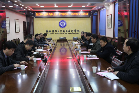 2月27日上午,陕西职业技术学院副院长杨建勋一行7人来到学院交流访问。学院副院长刘敏涵及各相关部门负责人热情接待了客人,并在北区图书馆三楼会议室针对骨干院校建设中实验实训条件建设工作进行了友好交流。