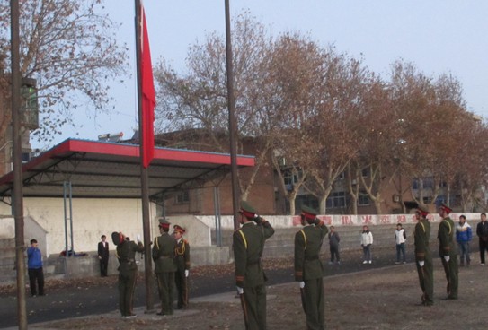 升旗仪式于早上7点正式开始,由院团委社团部副部长王伟博同学主持,他向与会同学讲解了有关“一二•九”运动的知识;国旗护卫队全体成员朗诵了纪念“一二•九”运动爱国诗歌。随后,伴着嘹亮的国歌由7名国旗护卫队队员将国旗冉冉升起。